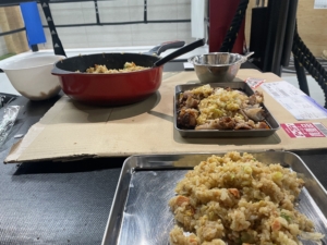 鮭チャーハンは雨宮コーチ、油淋鶏は私・山本が担当しました。